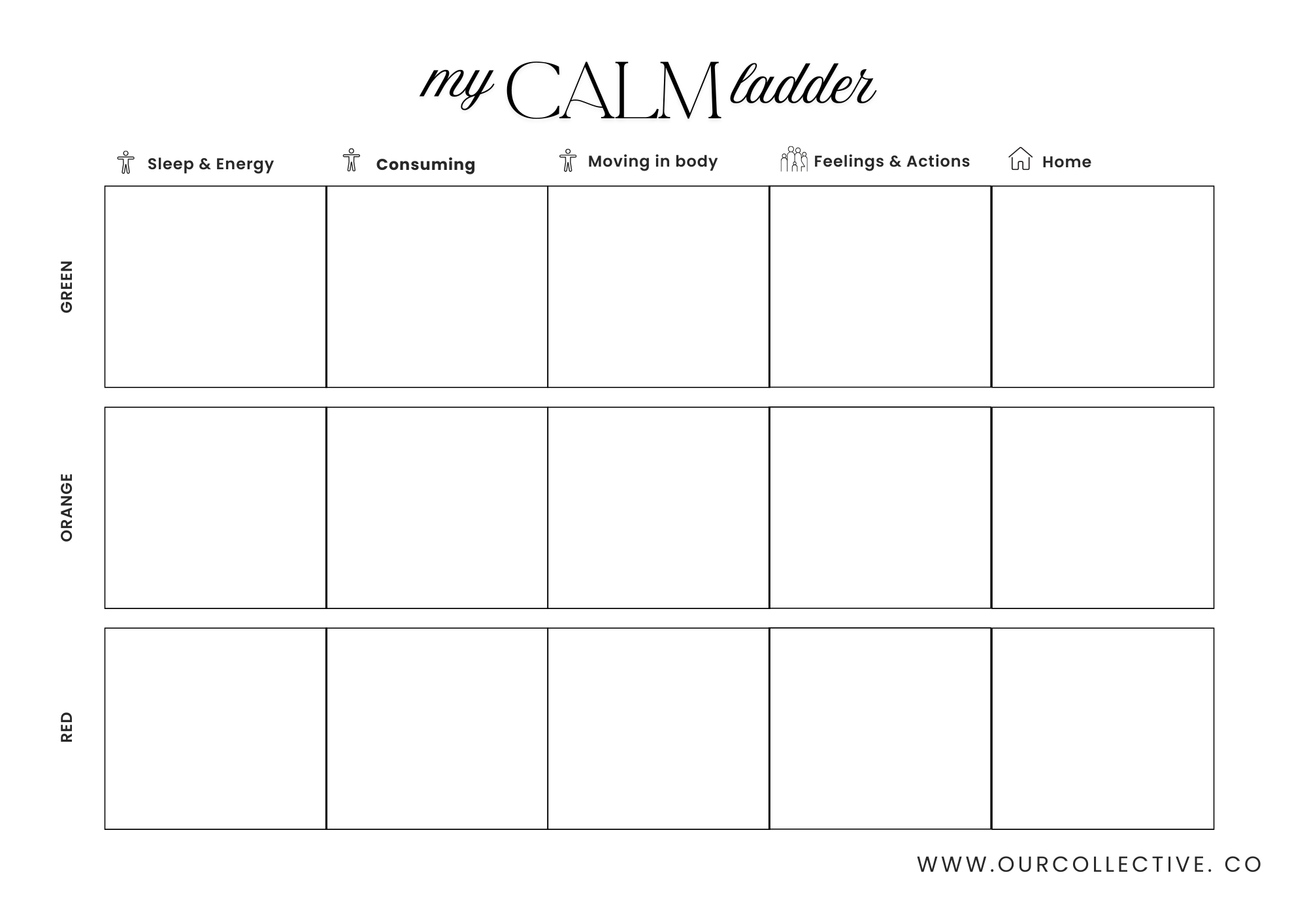 Become aware when we are in red, orange & green zone and how to honour ourselves to move on up.